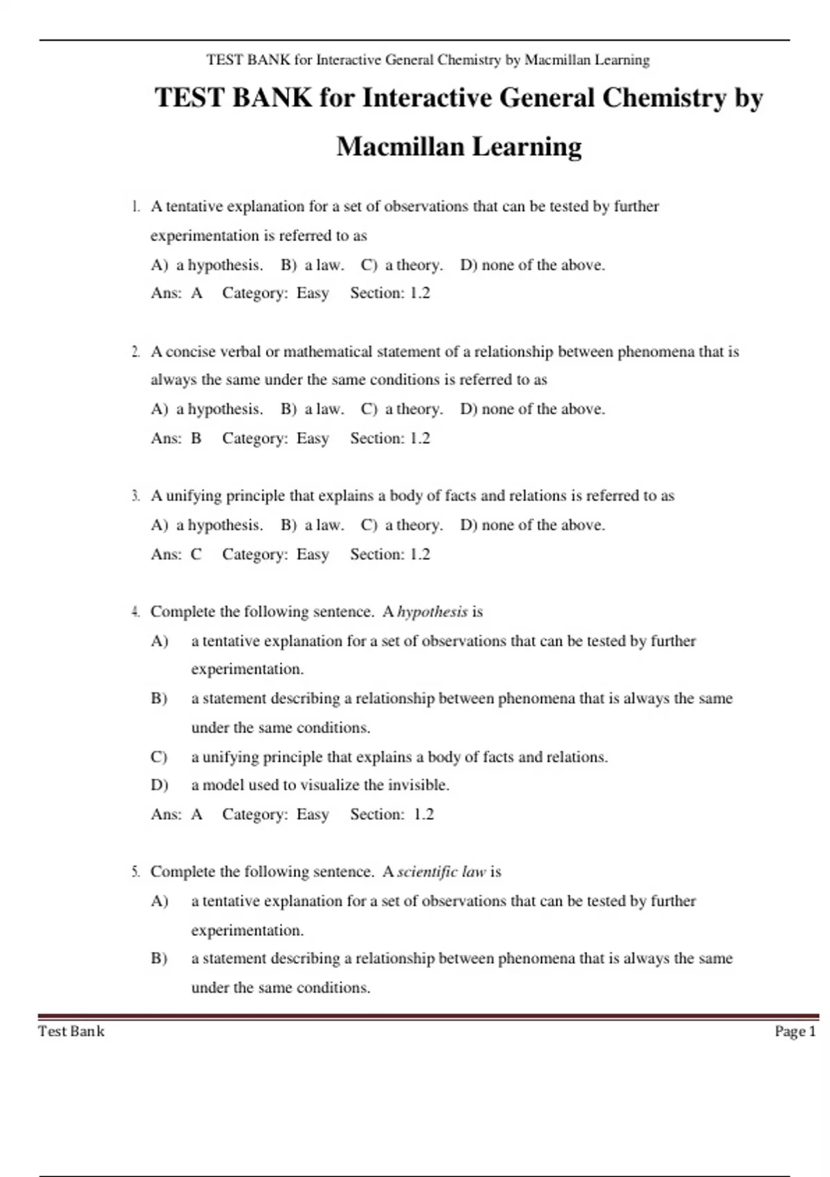 TEST BANK for Interactive General Chemistry by Macmillan Learning A+