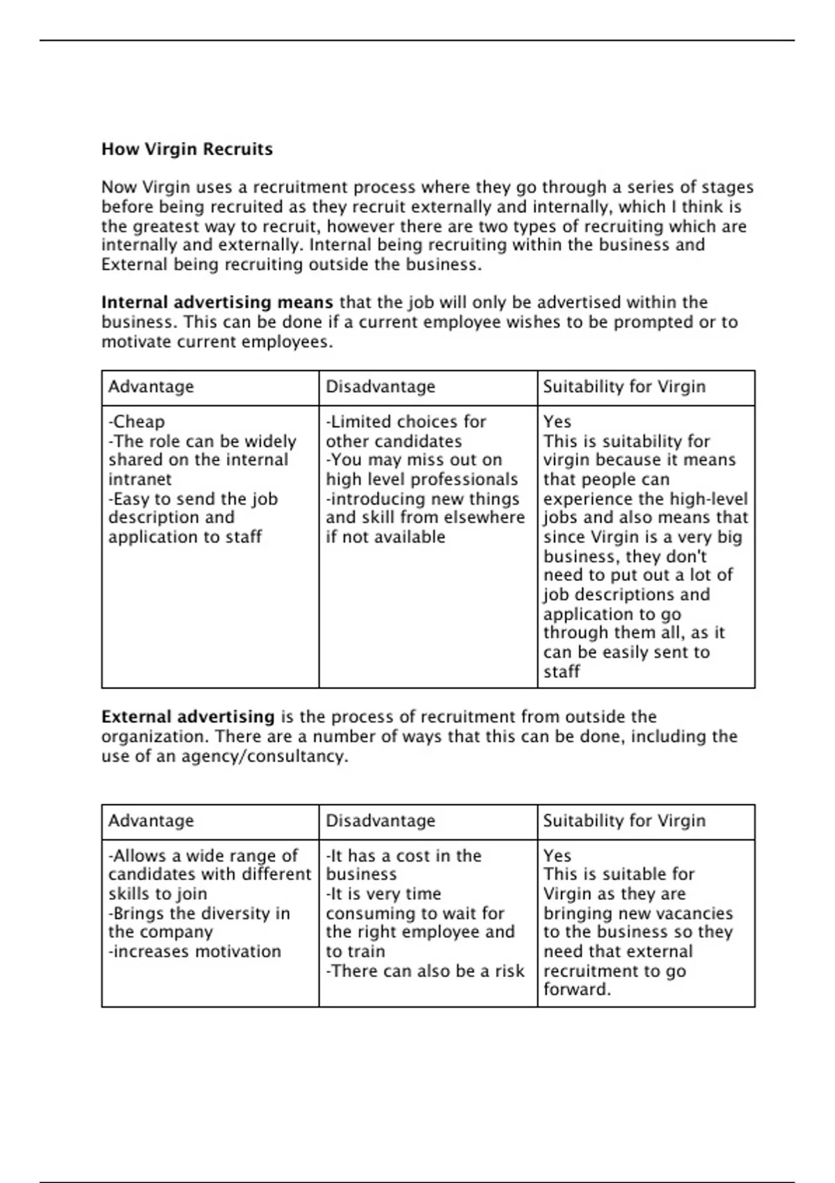Now Virgin uses a recruitment process where they go through a series of stages