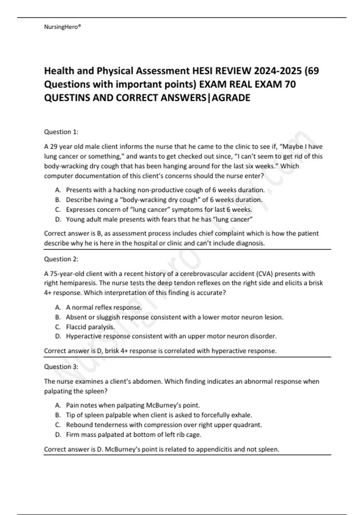 Health and Physical Assessment HESI REVIEW 2024-2025 (69