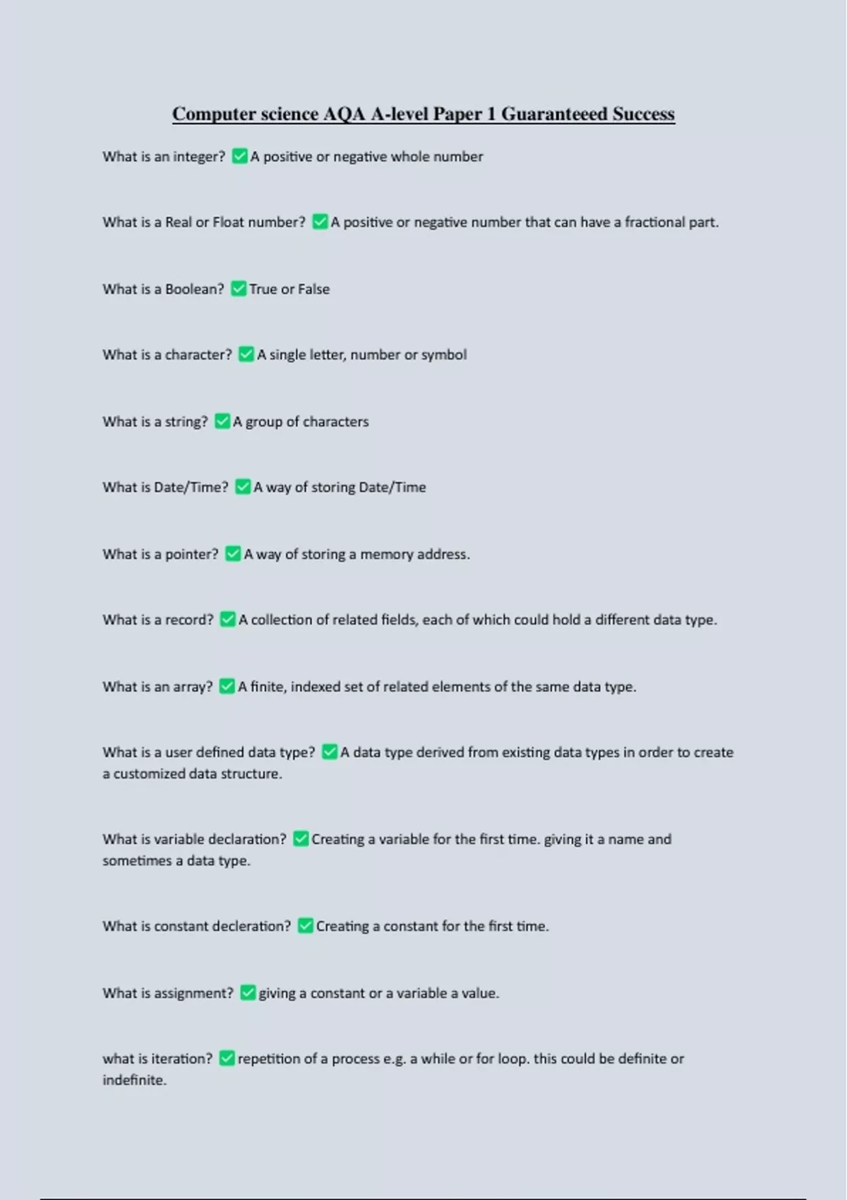 Computer science AQA A-level Paper 1 Guaranteeed Success