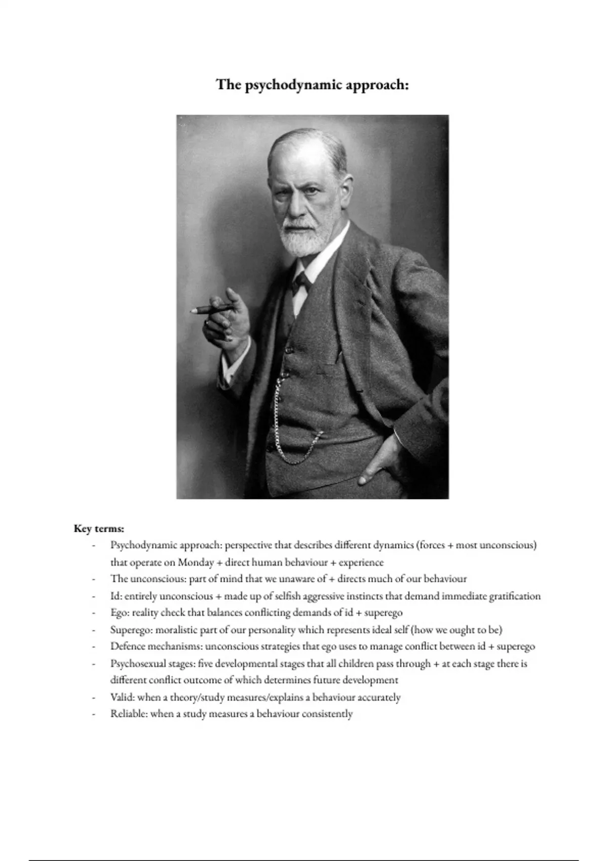 Here is everything you possibly need to know about the Psychodynamic approach. Notes are organized, easy to read and memorize.