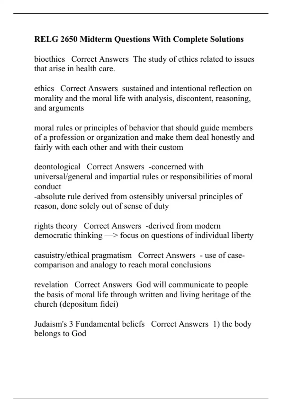 RELG 2650 Midterm Questions With Complete Solutions