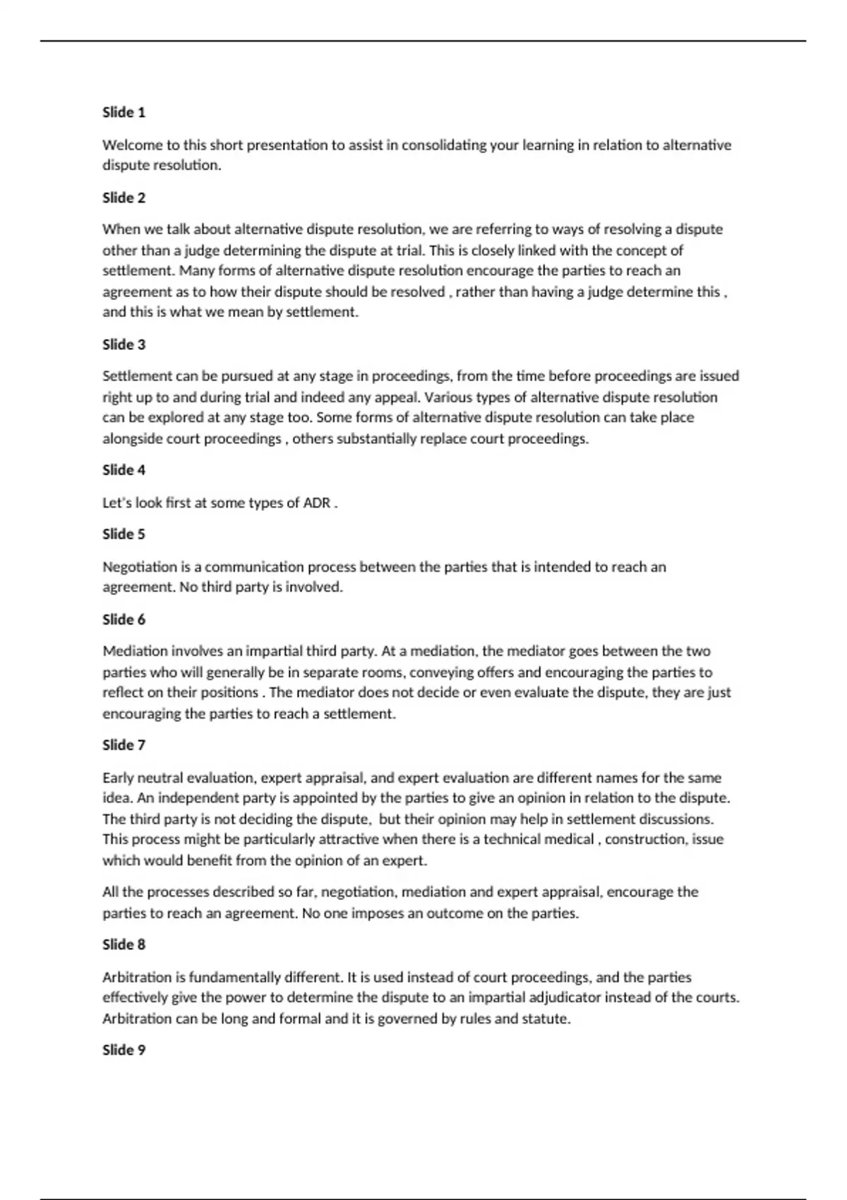 other than a judge determining the dispute at trial. This is closely linked with the concept of