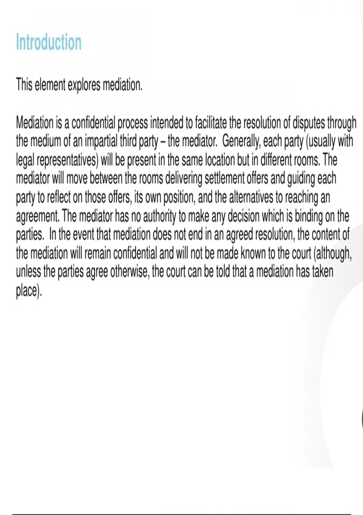 This element explores mediation.