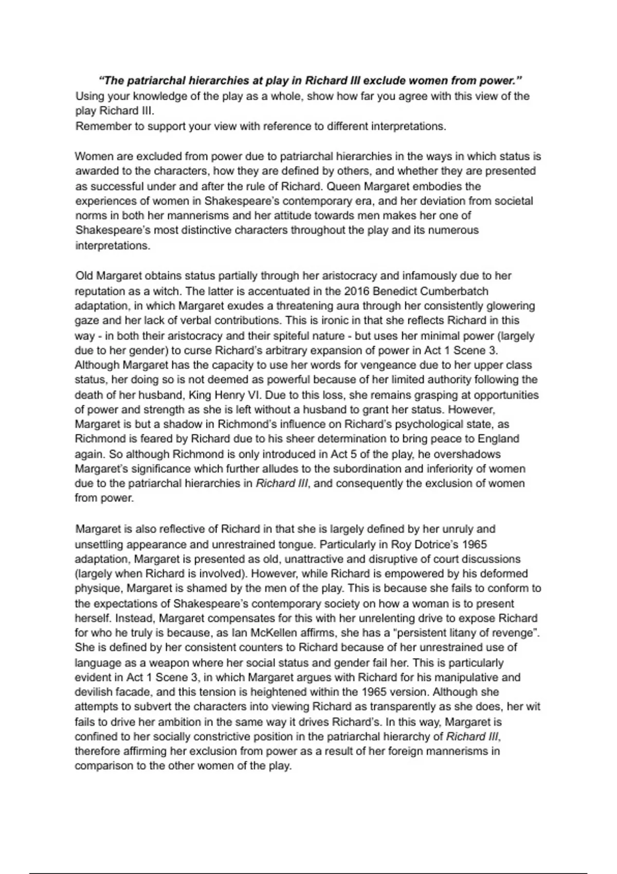 due to the patriarchal hierarchies in Richard III, and consequently the exclusion of women