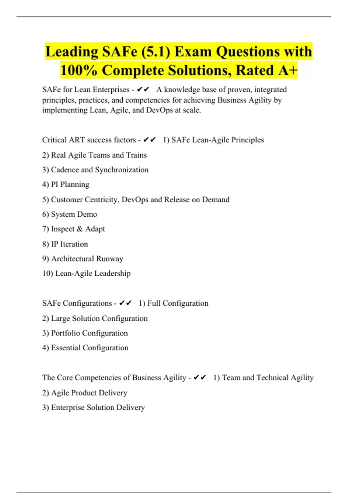 Leading SAFe (5.1) Exam Questions with 100% Complete Solutions, Rated A+