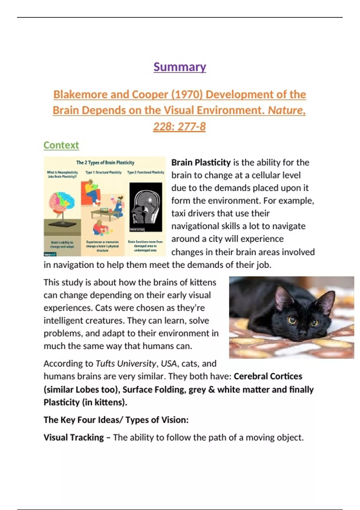 Previous Research into Cat Vision and Plasticity: