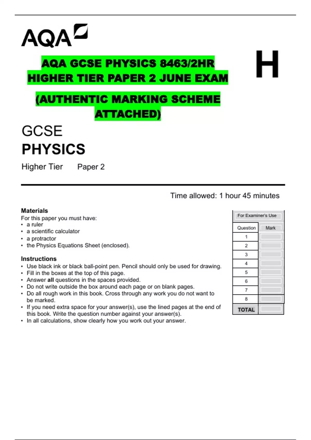 HIGHER TIER PAPER 2 JUNE EXAM H