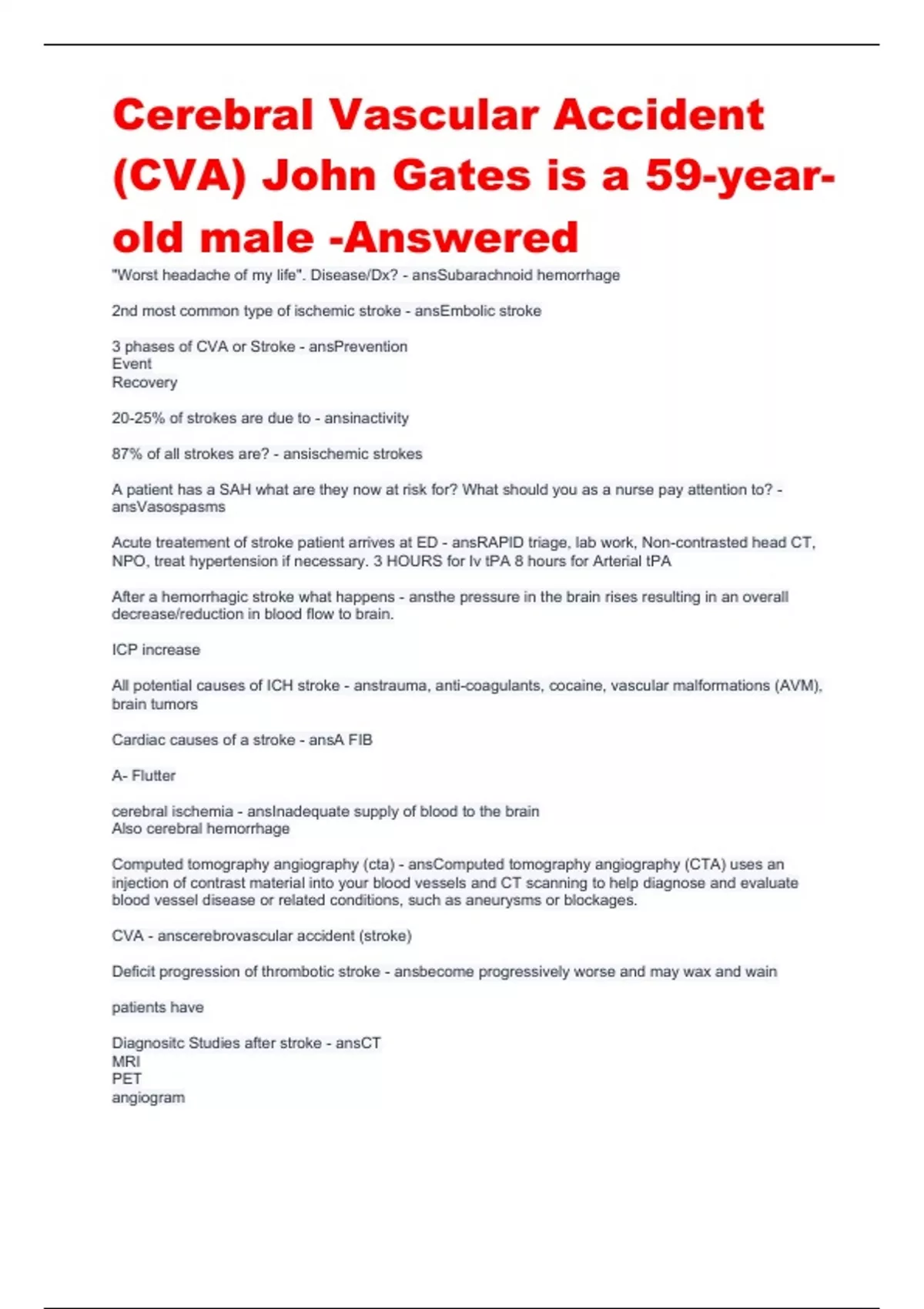 Cerebral Vascular Accident (CVA) John Gates is a 59-year-old male -Answered