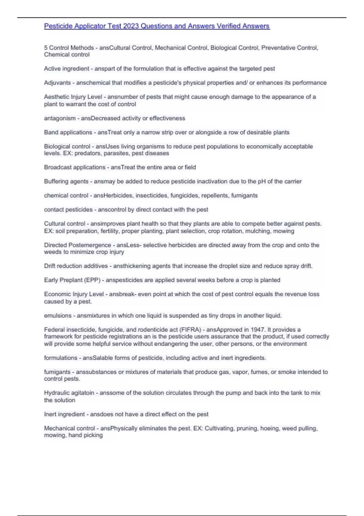 ,Pesticide Applicator Test 2023 Questions and Answers Verified Answers