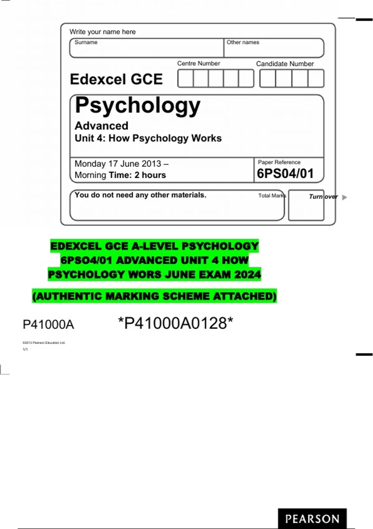 EDEXCEL GCE A-LEVEL PSYCHOLOGY