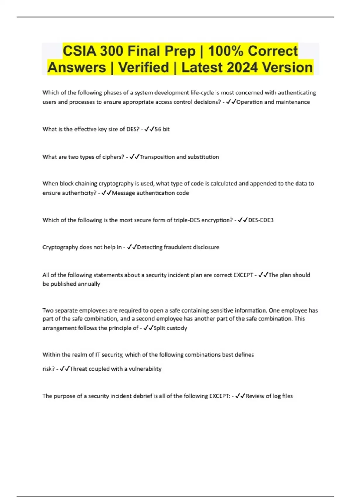CSIA 300 Final Prep | 100% Correct Answers | Verified | Latest 2024 Version