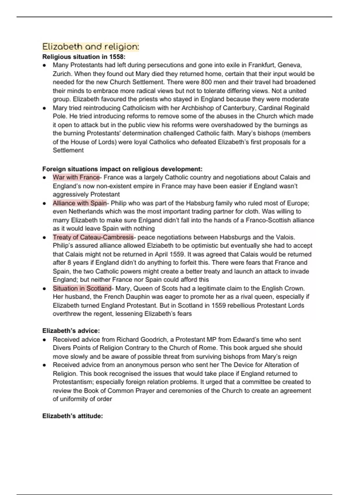 ● Received advice from Richard Goodrich, a Protestant MP from Edward’s time who sent