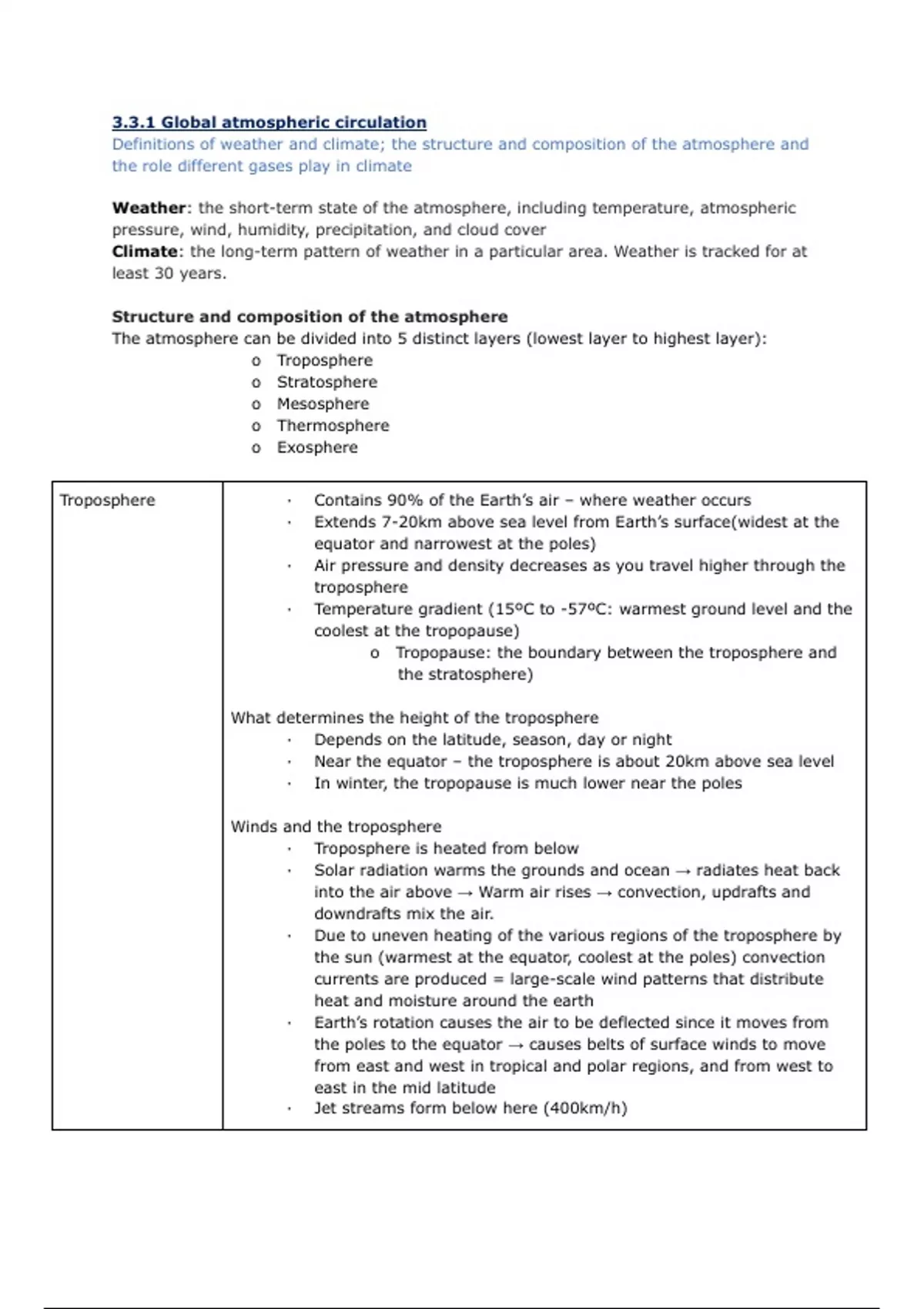 Definitions of weather and climate; the structure and composition of the atmosphere and