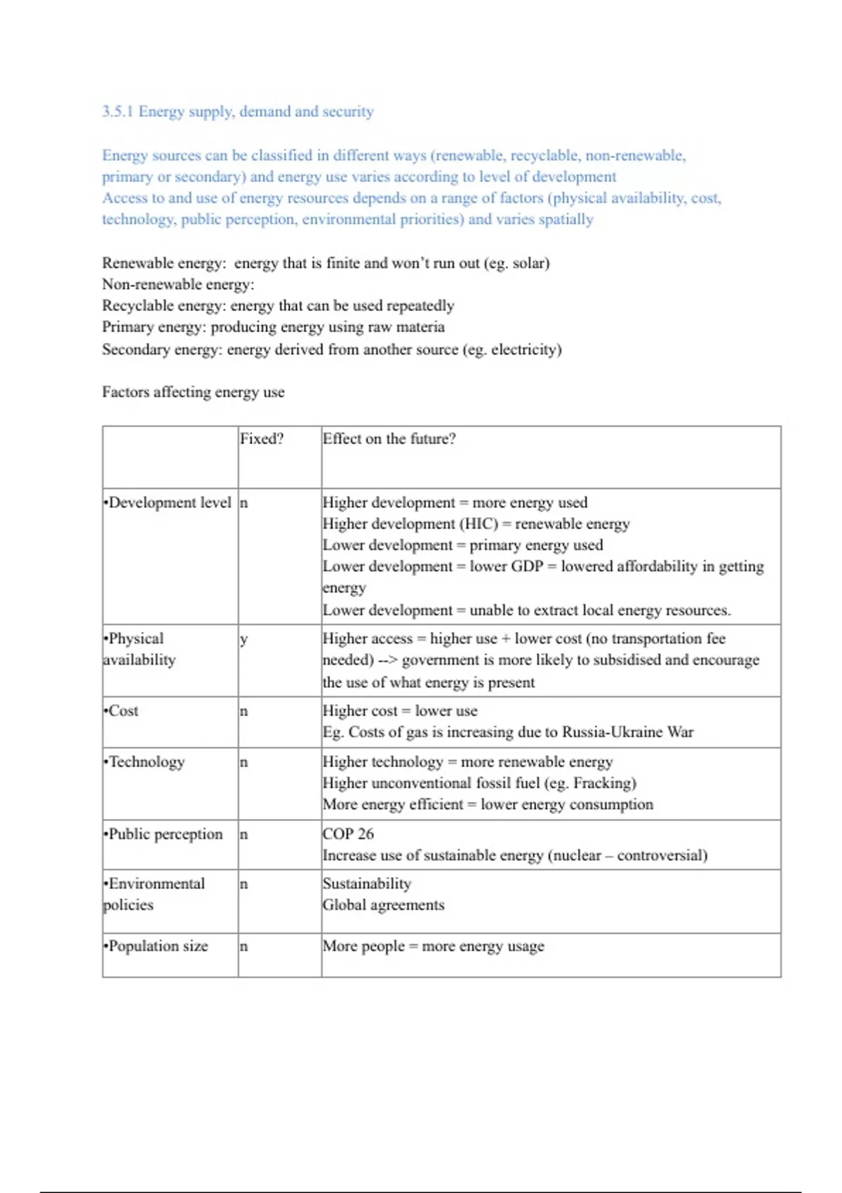 Access to and use of energy resources depends on a range of factors (physical availability, cost,
