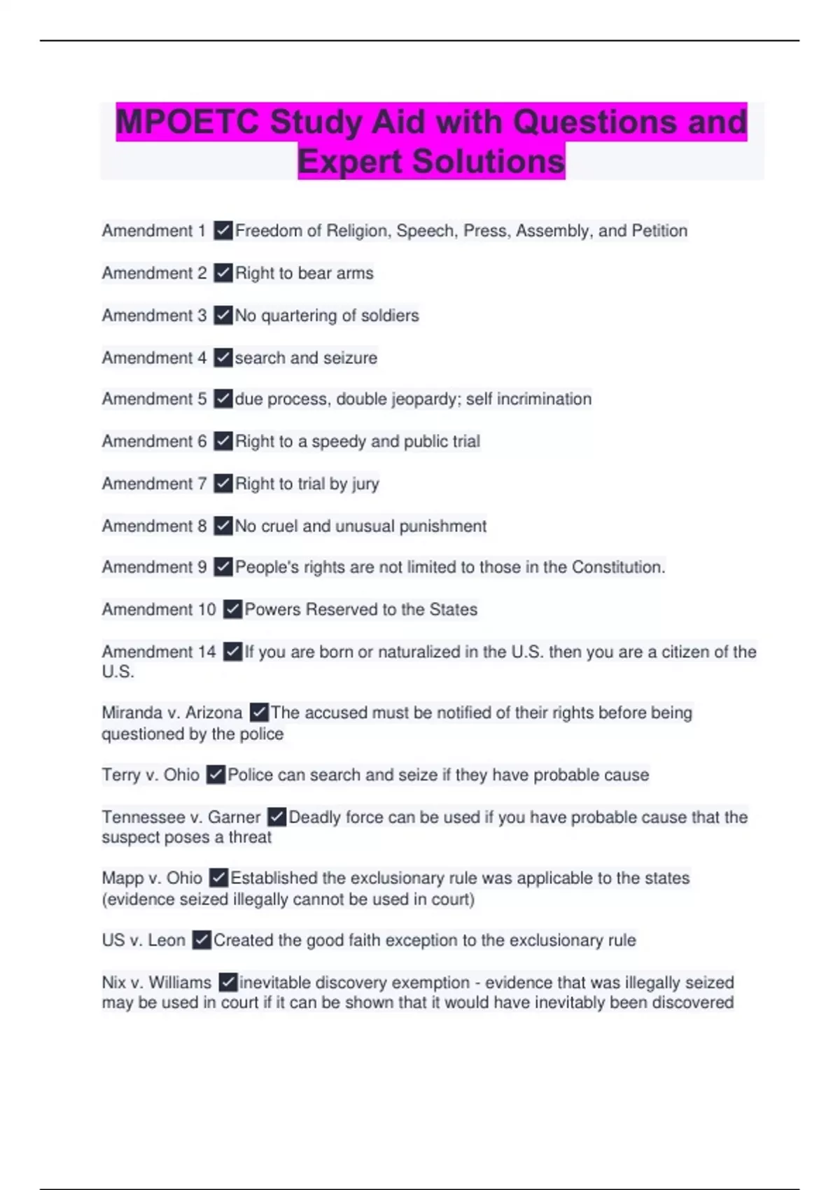 MPOETC Study Aid with Questions and Expert Solutions