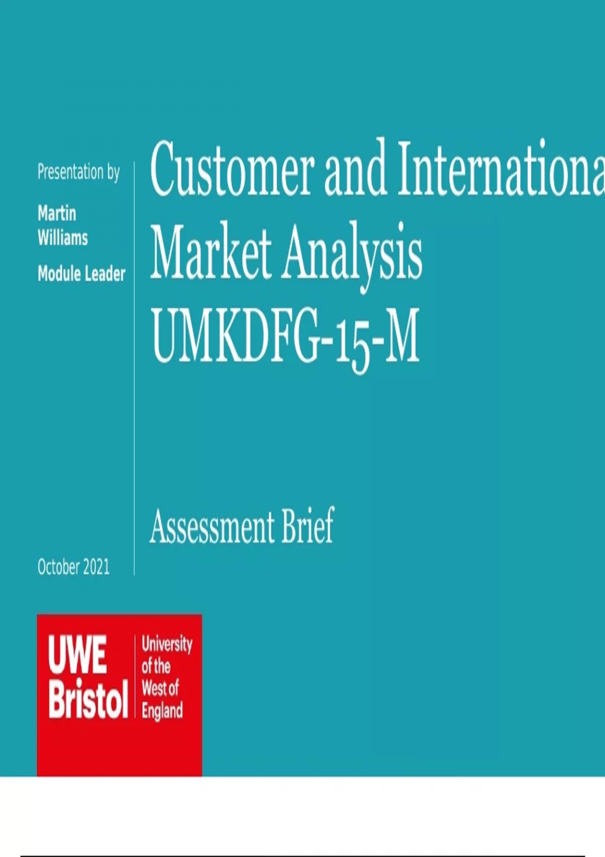 Week 4 – the Marketing Audit – will be particularly important, as you will need to include y