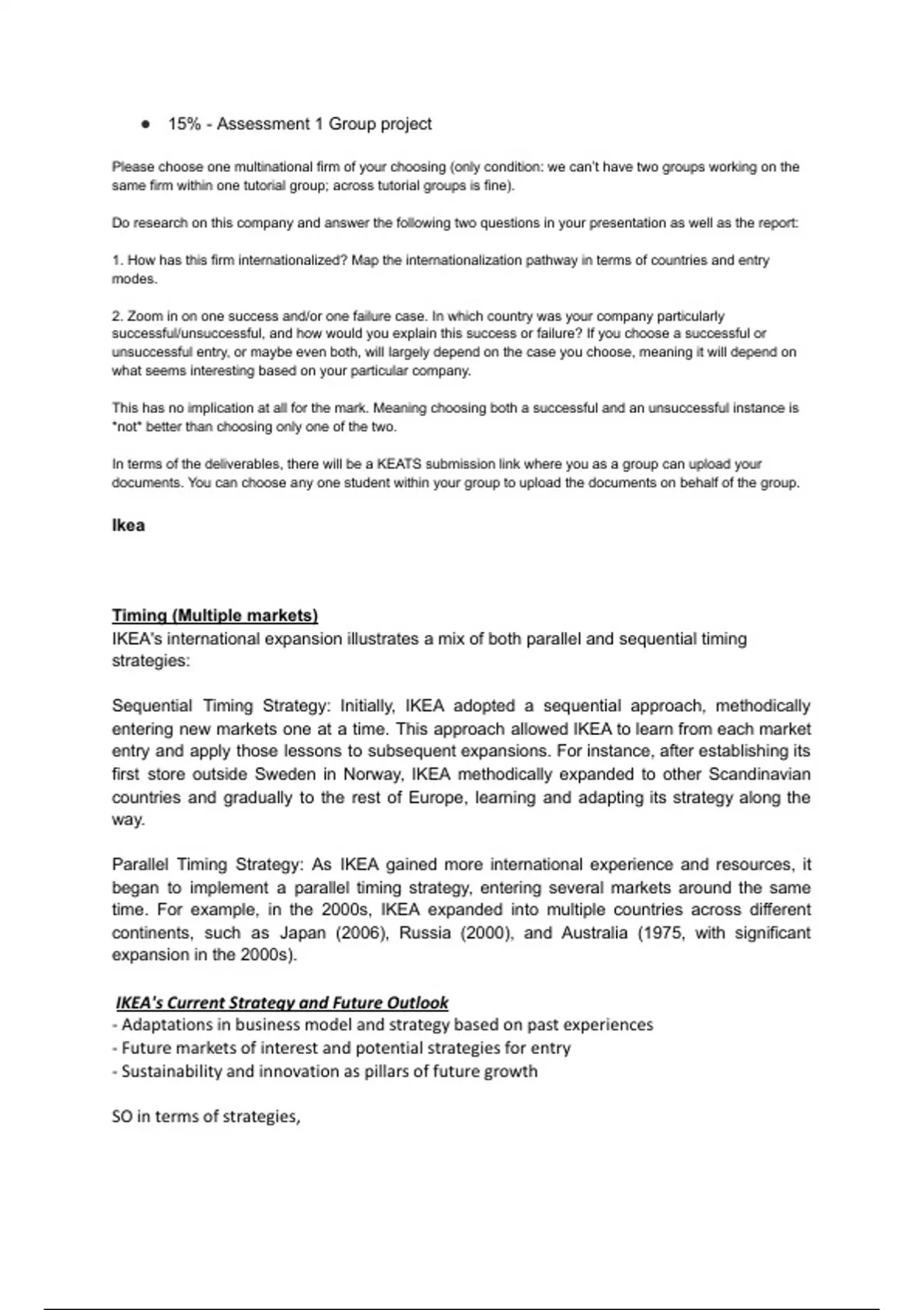IKEA's international expansion illustrates a mix of both parallel and sequential timing