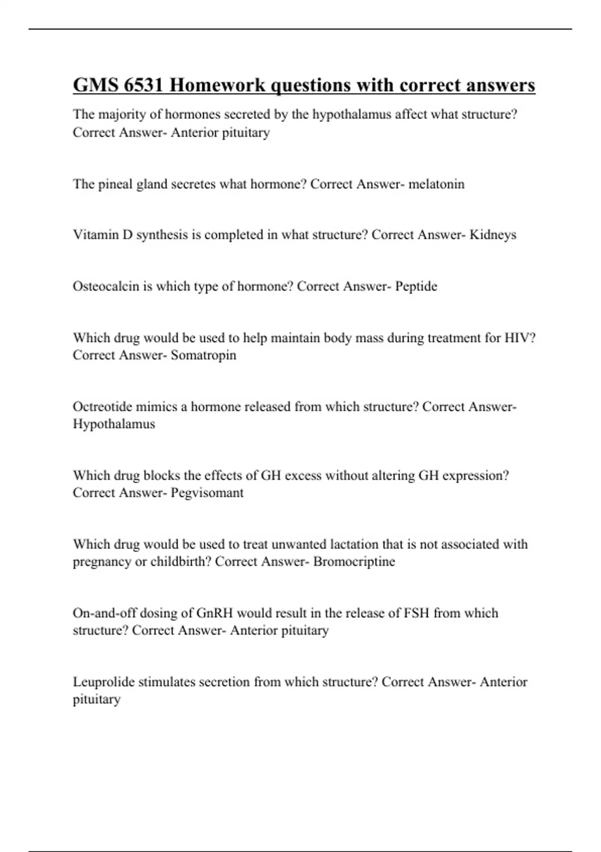 gms 6531 homework questions with correct answers