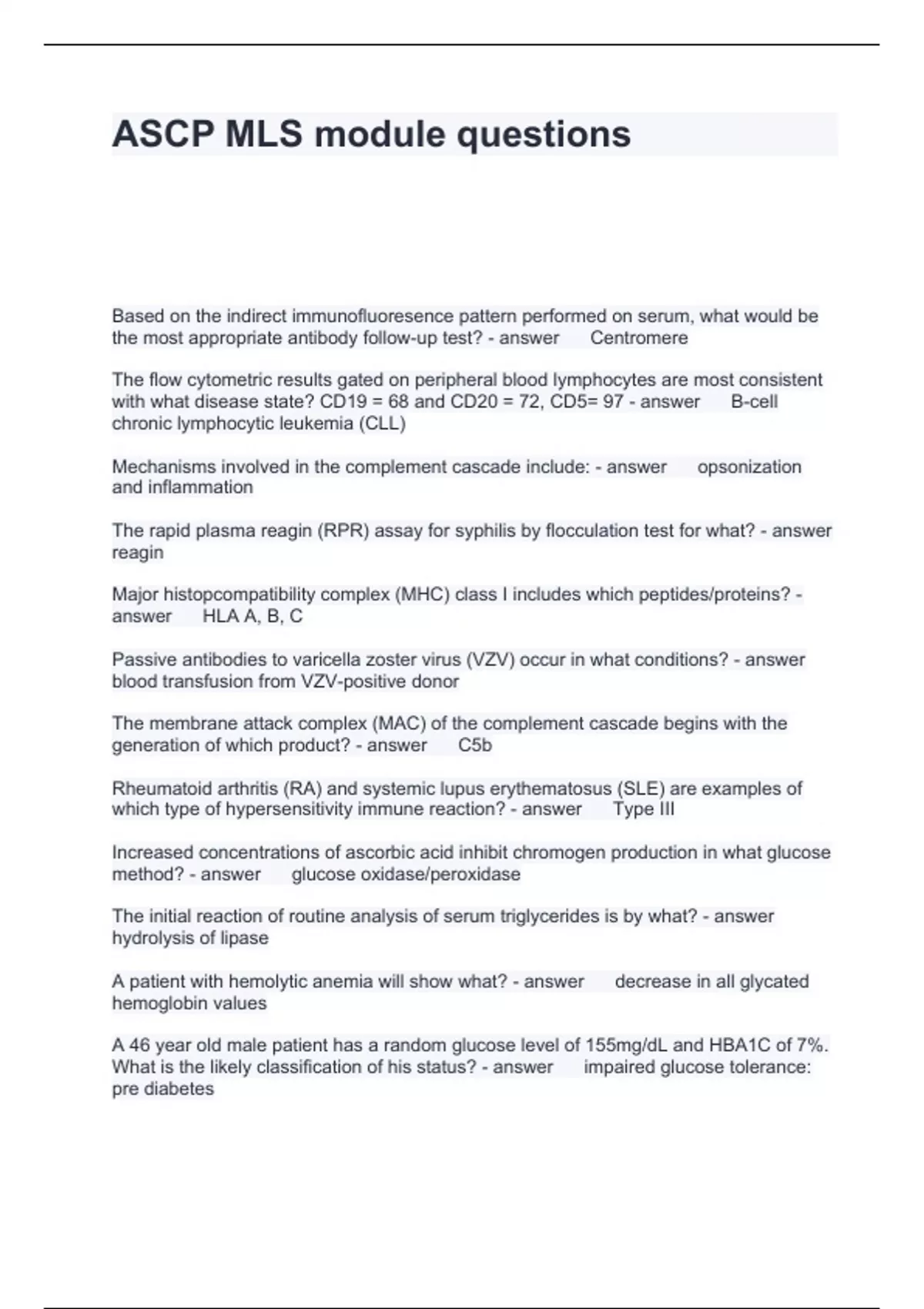 ASCP MLS module questions and answers latest updated