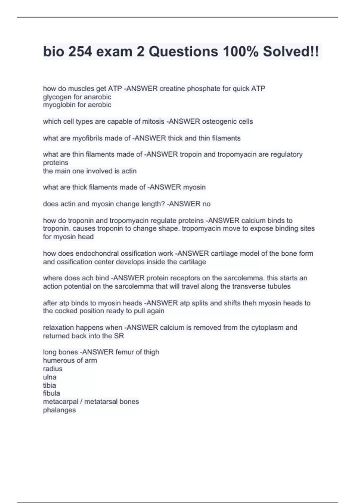 bio 254 exam 2 questions 100 solved