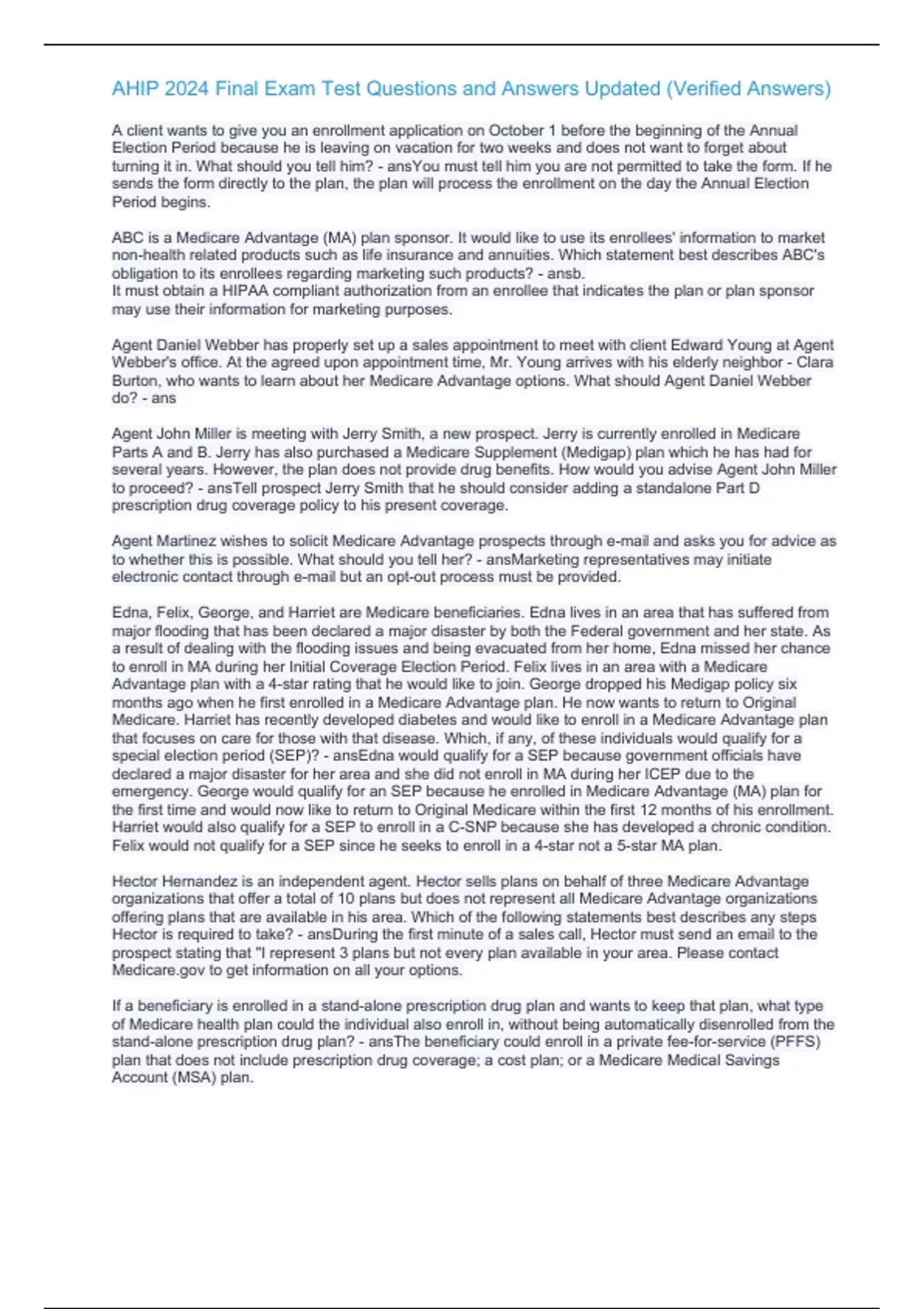 , AHIP 2024 Final Exam Test Questions and Answers Updated (Verified Answers)