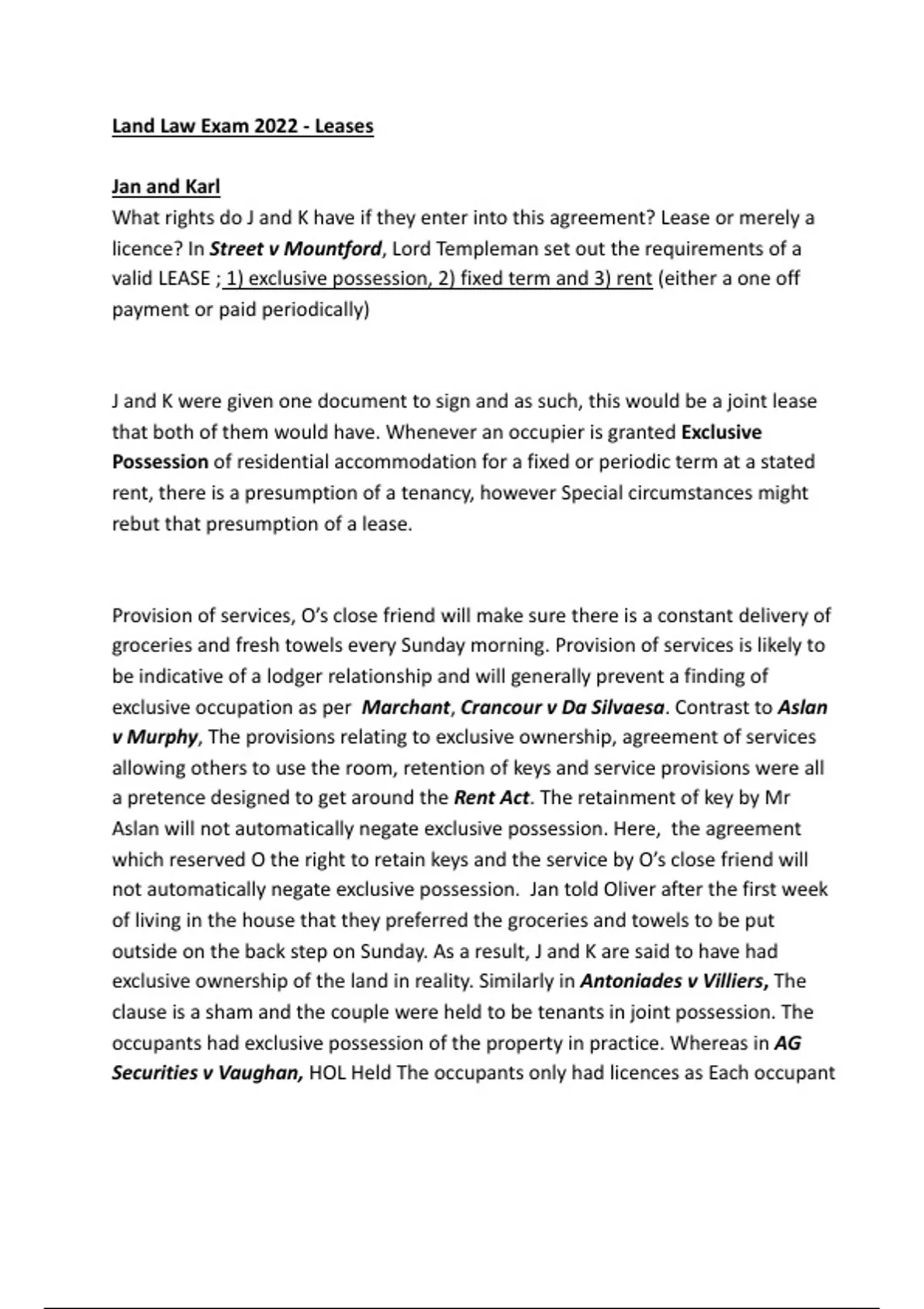 Land Law Exam 2022 - Leases