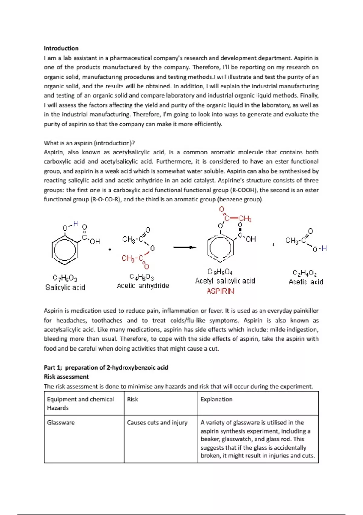 I am a lab assistant in a pharmaceutical company's research and development department. Aspirin is