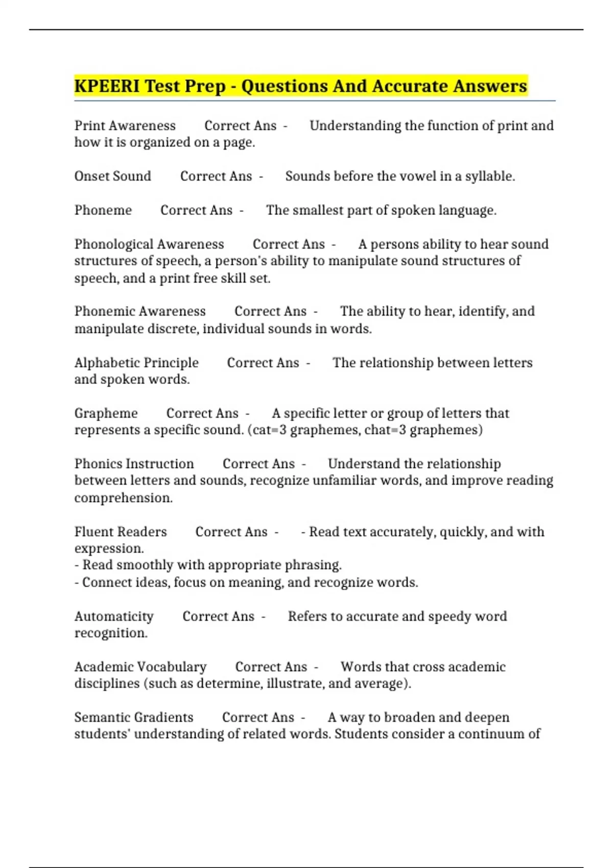 kpeeri test prep questions and accurate answers