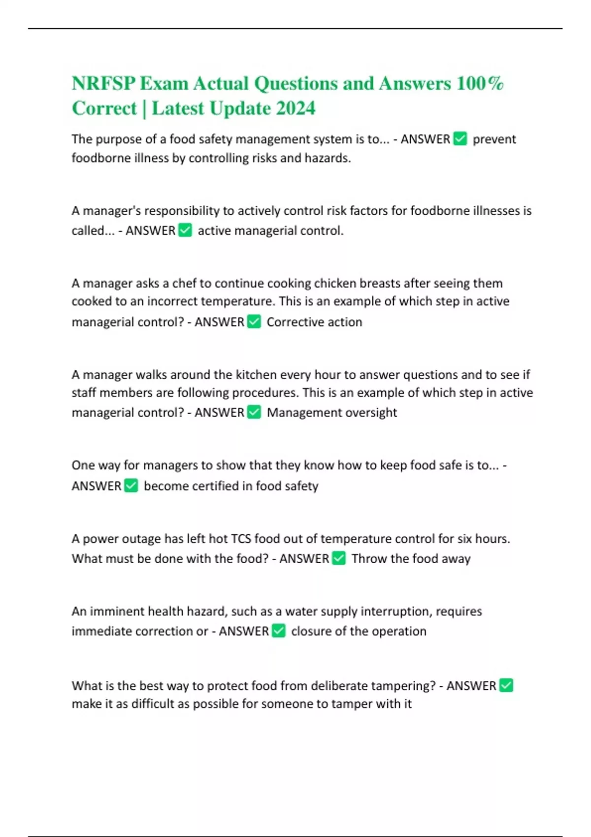 NRFSP Exam Actual Questions and Answers 100% Correct | Latest Update 2024