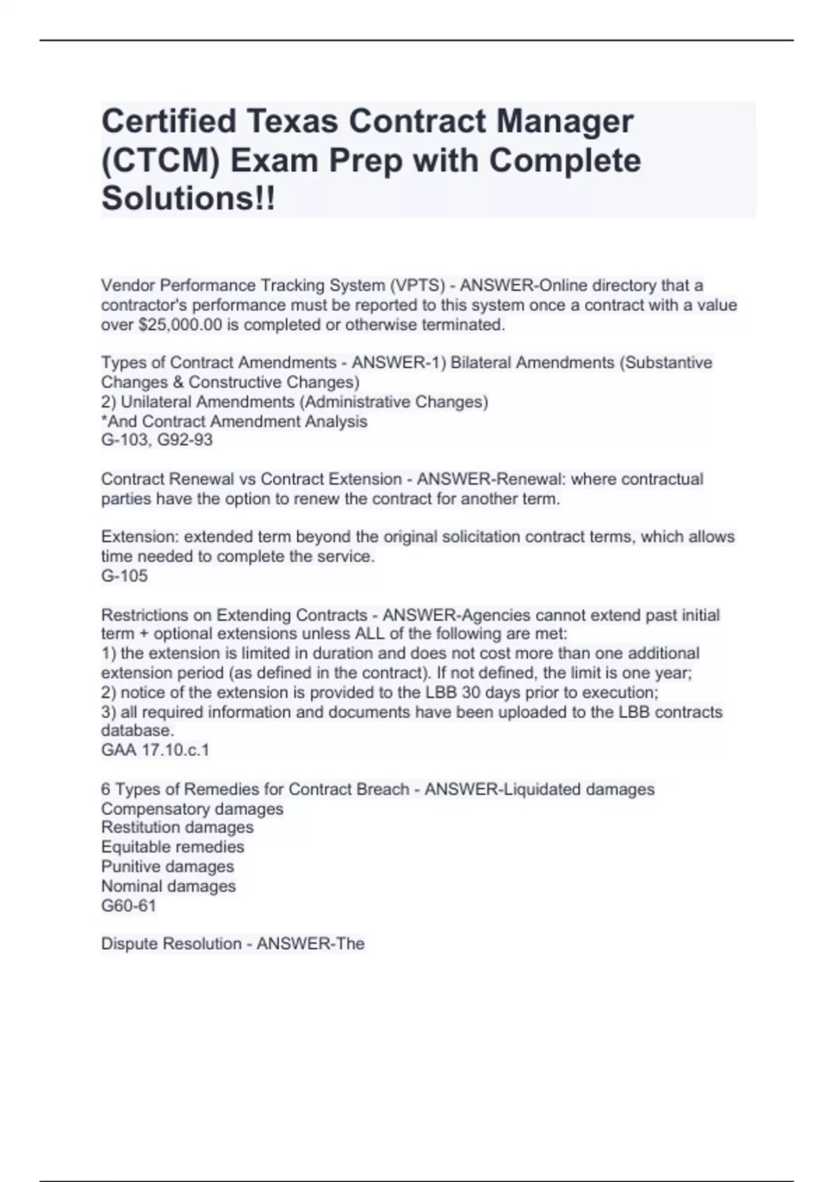 Certified Texas Contract Manager (CTCM) Exam Prep with Complete Solutions!!