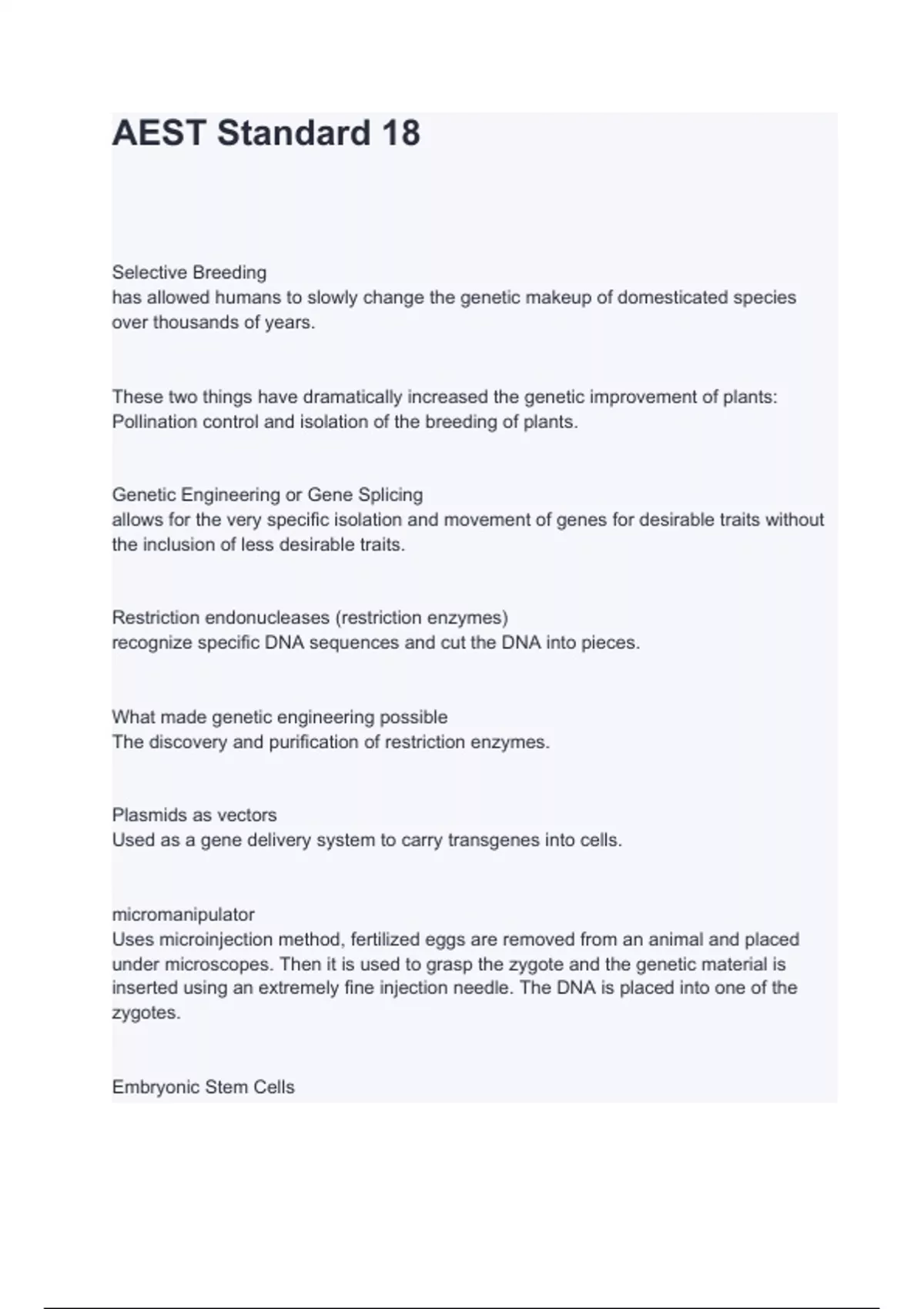 - AEST Standard 18 Selective Breeding has allowed hu