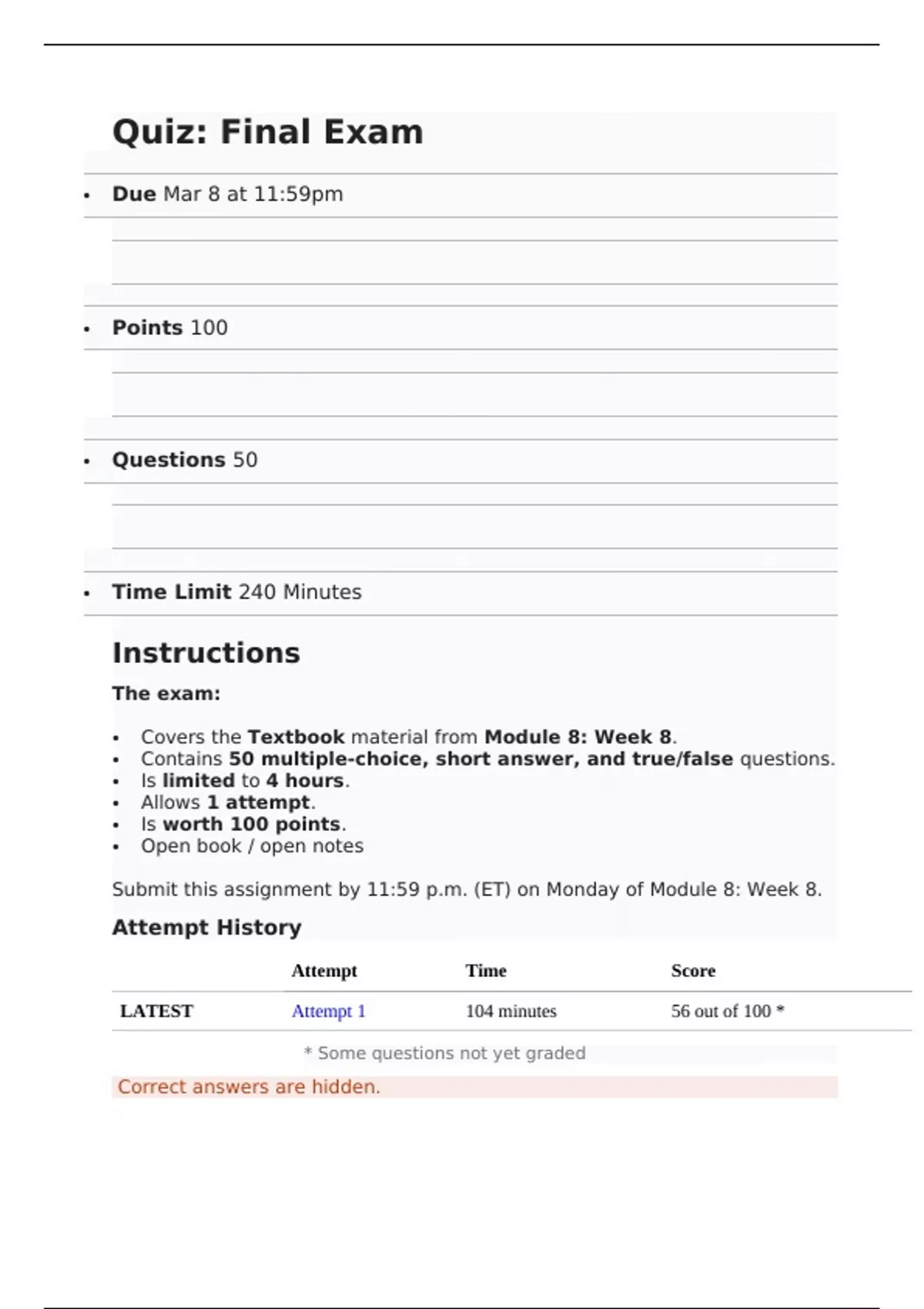LATEST Attempt 1 104 minutes 56 out of 100 *