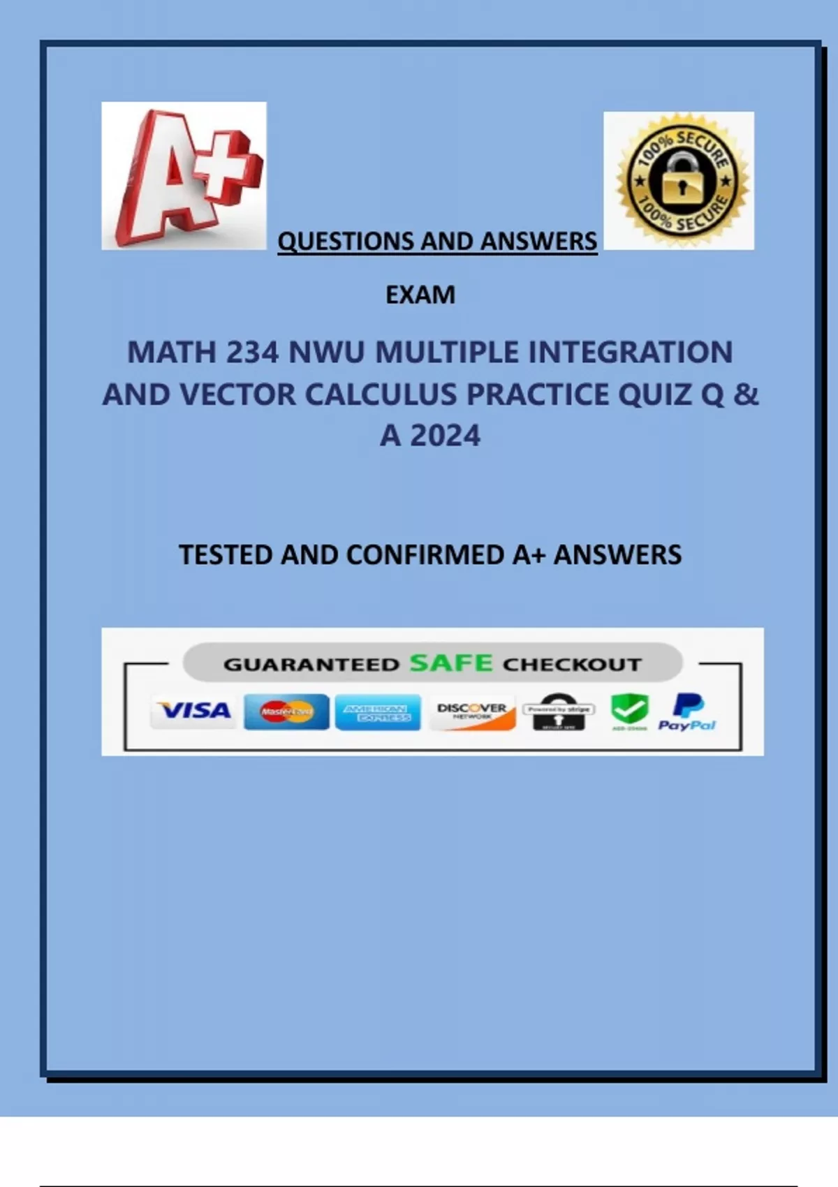 MATH 234 NWU MULTIPLE INTEGRATION AND VECTOR CALCULUS PRACTICE QUIZ Q & A
