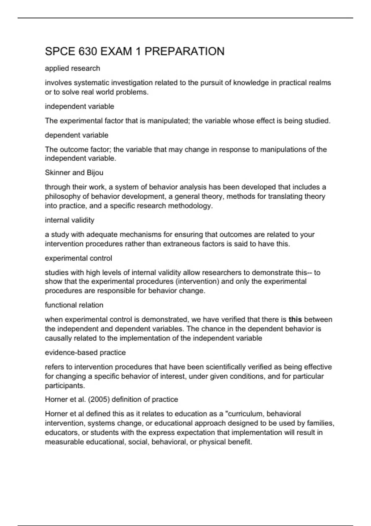 SPCE 630 EXAM 1 PREPARATION