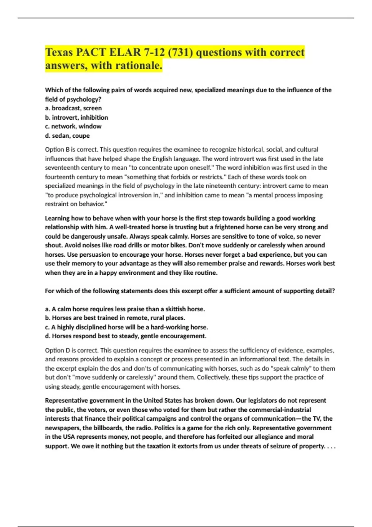 answers, with rationale.