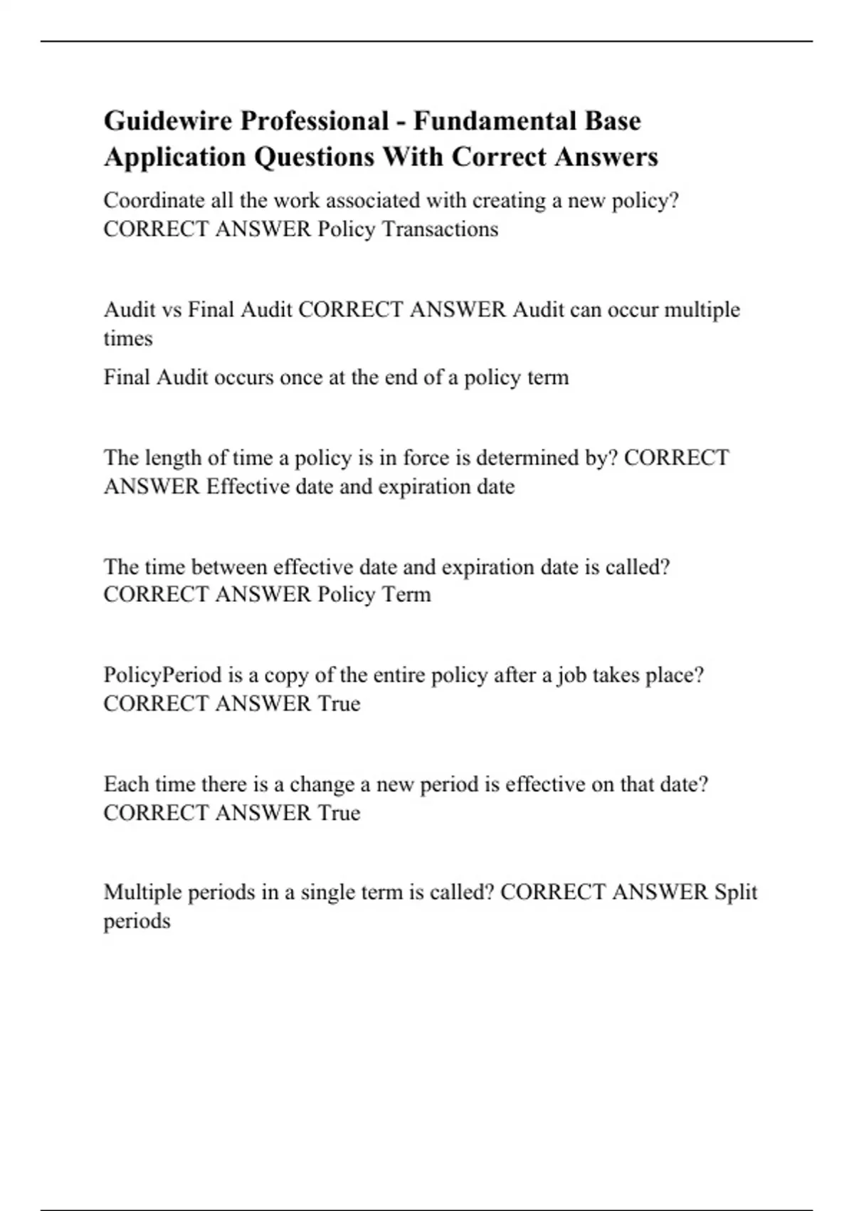 Guidewire Professional - Fundamental Base Application Questions With Correct Answers