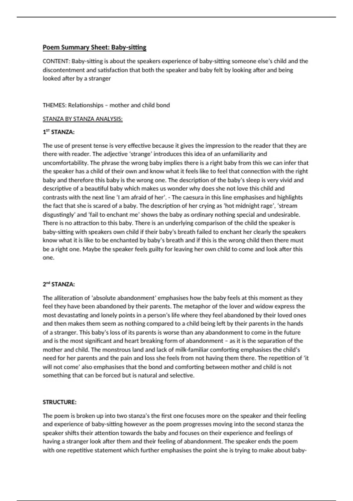 and experience of baby-sitting however as the poem progresses moving into the second stanza the