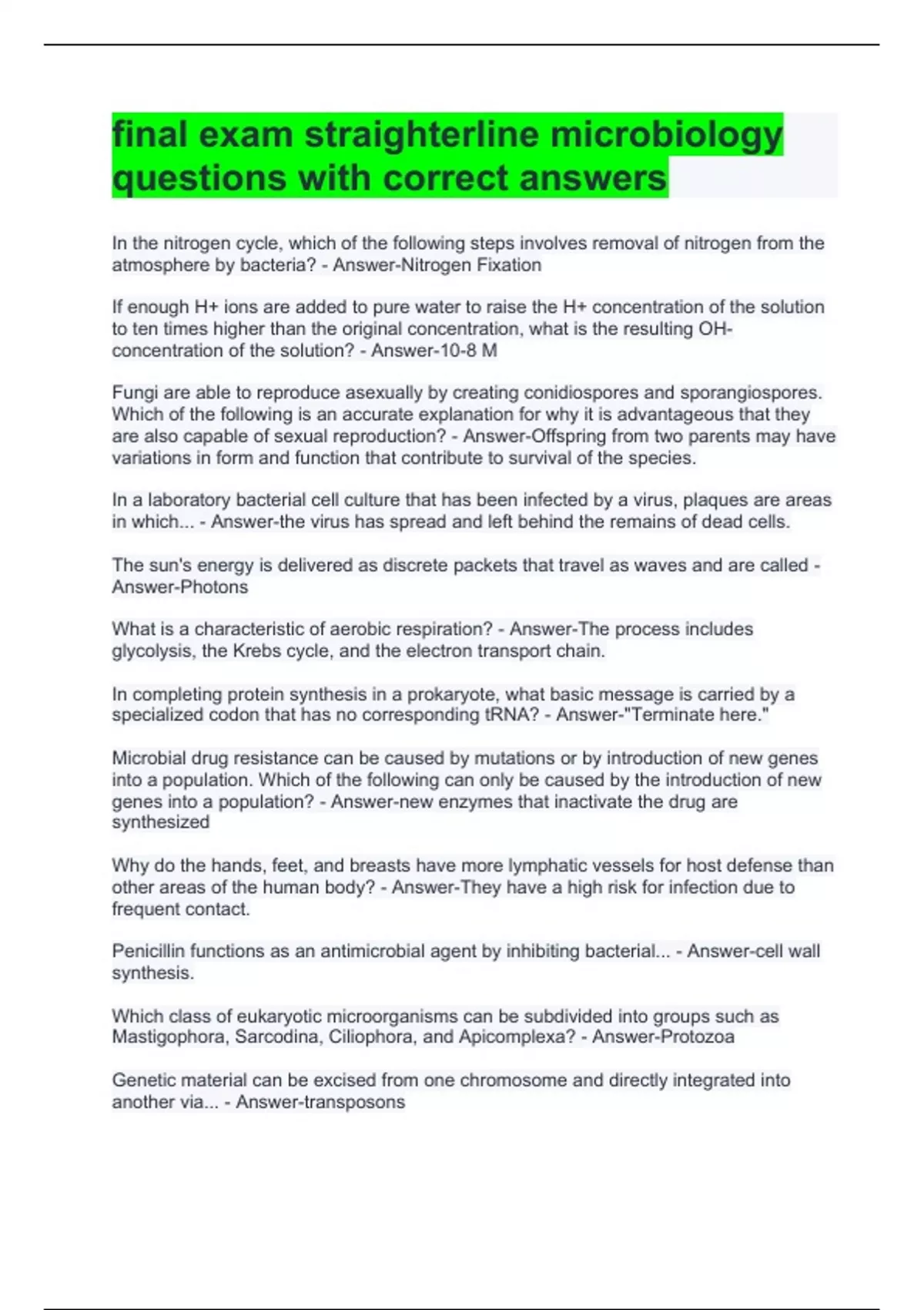 final exam straighterline microbiology questions with correct answers