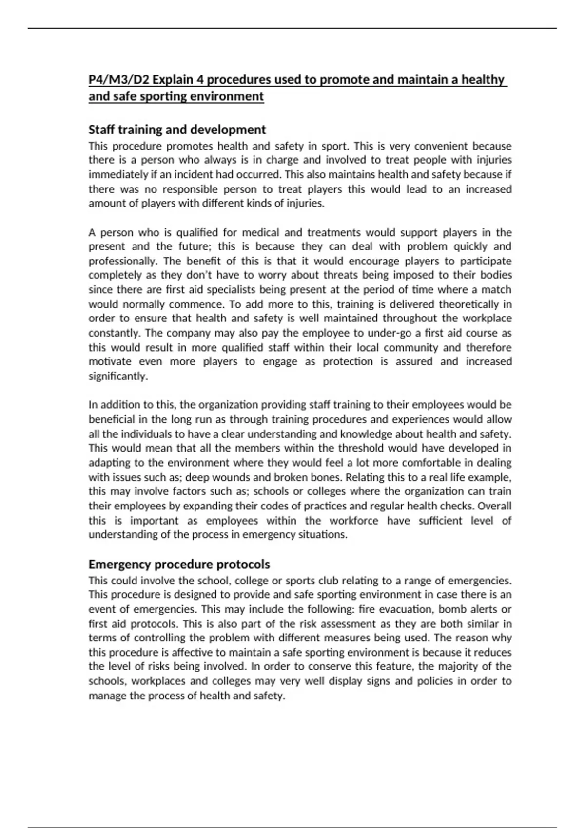 This procedure is designed to provide and safe sporting environment in case there is an