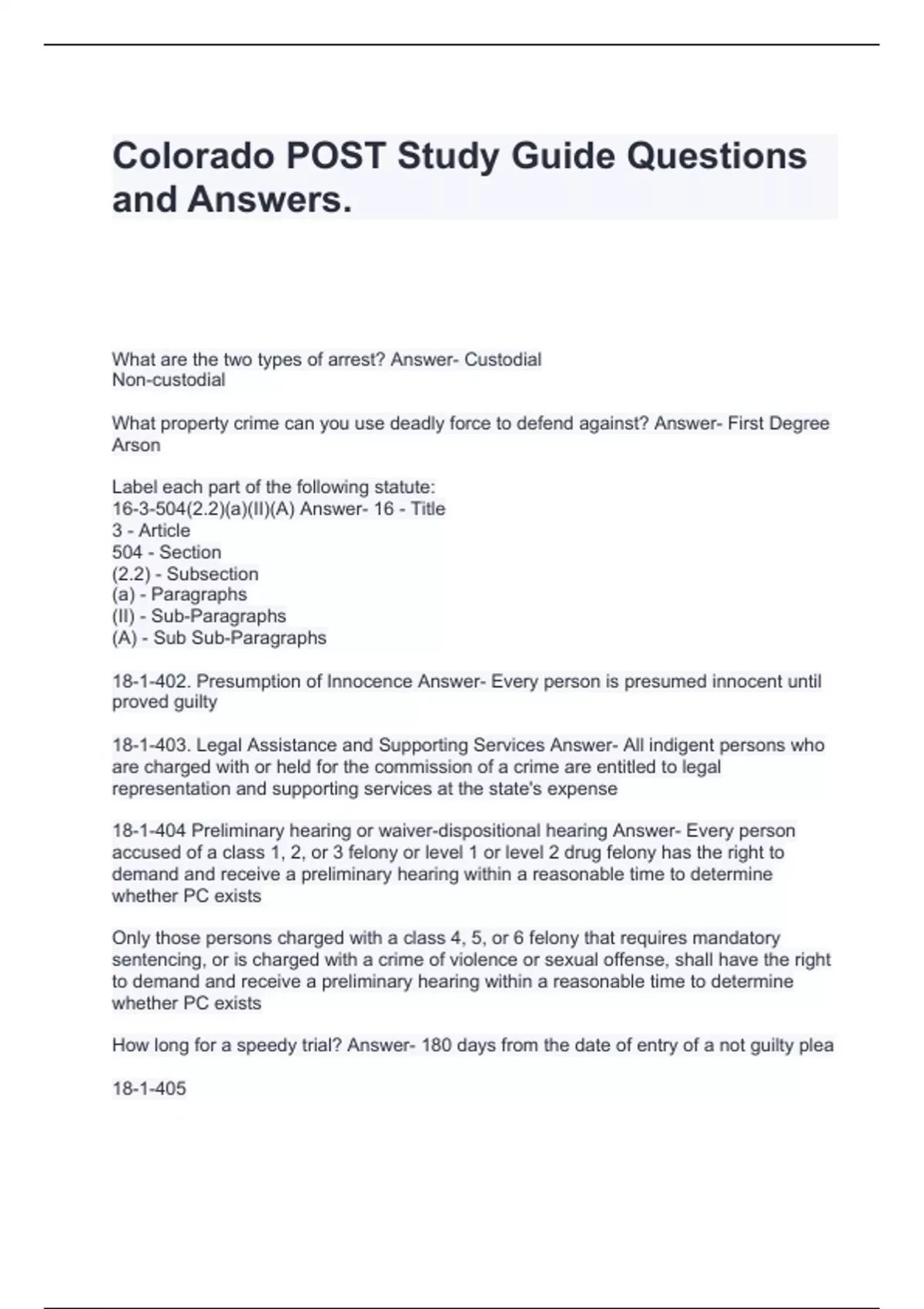 Colorado POST Study Guide Questions and Answers