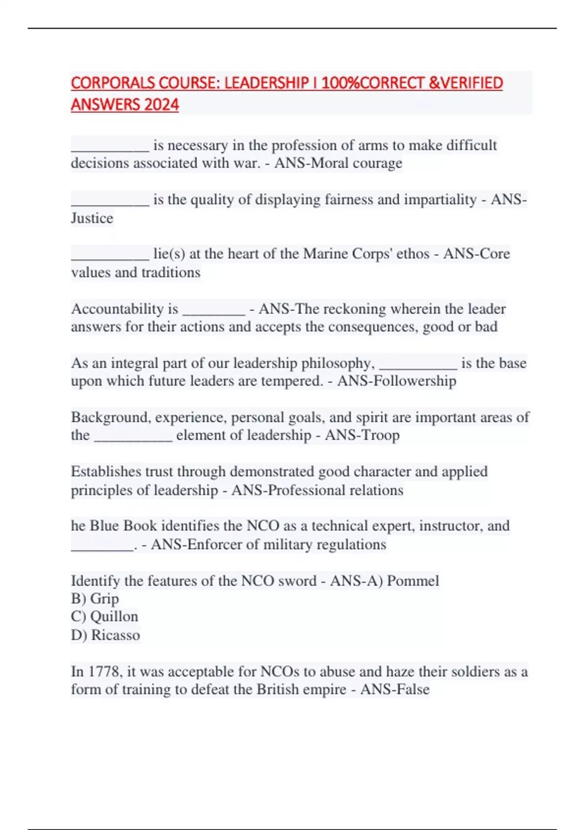 CORPORALS COURSE: LEADERSHIP I 100%CORRECT &VERIFIED ANSWERS 2024
