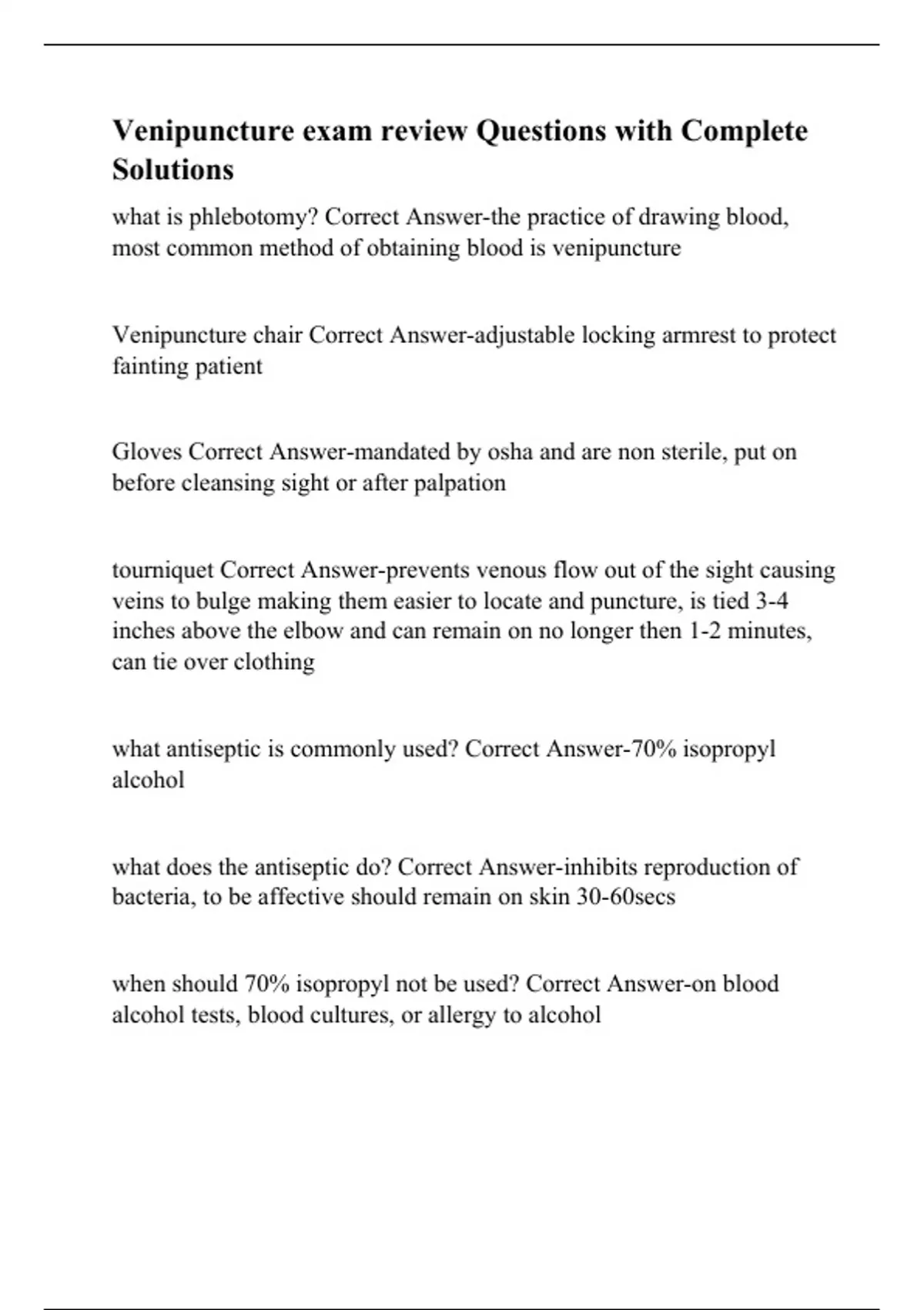Venipuncture exam review Questions with Complete Solutions