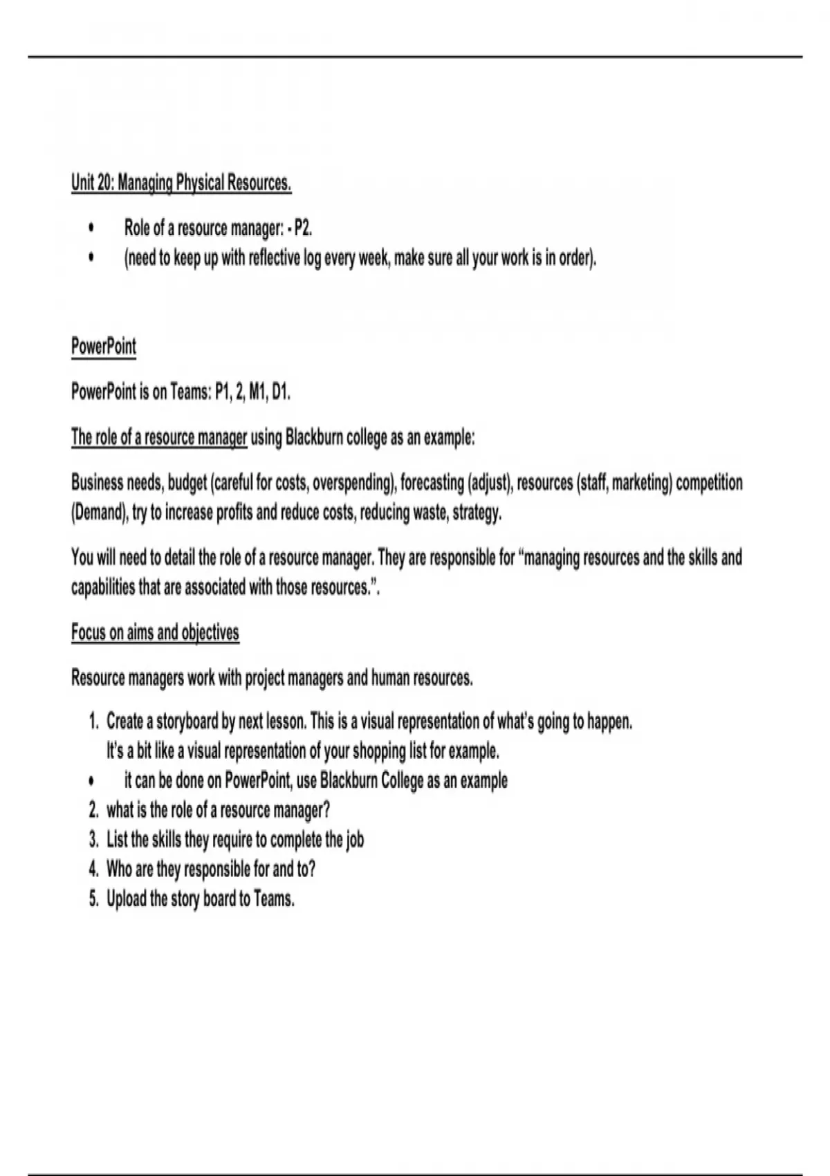 You will need to detail the role of a resource manager. They are responsible for “managing resources and the skills and