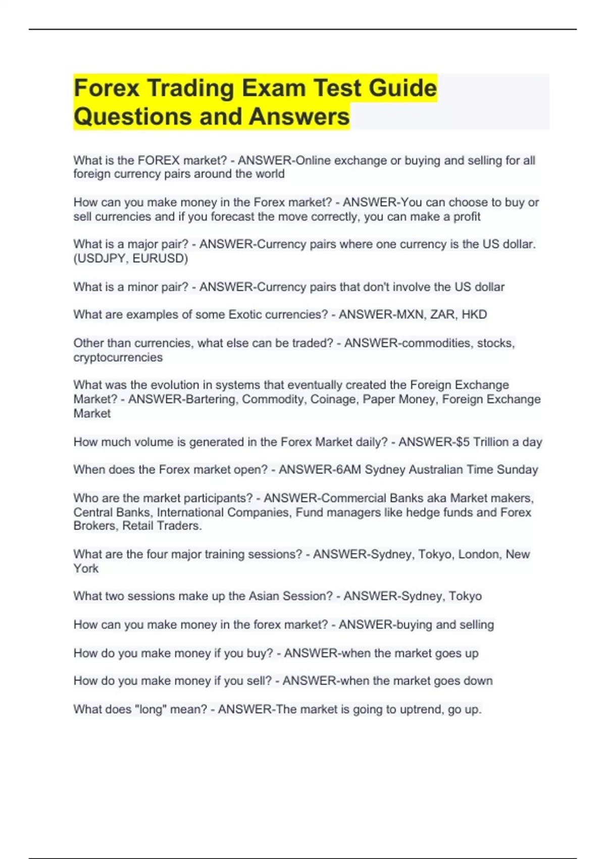 What is the FOREX market? - ANSWER-Online exchange or buying and selling for all