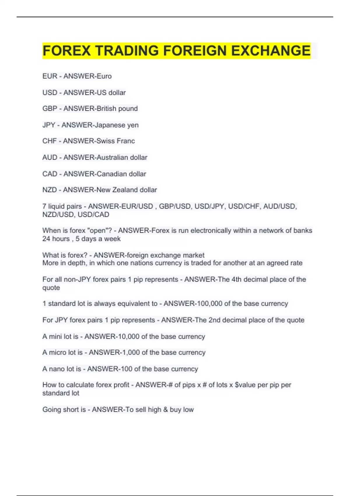 What is forex? - ANSWER-foreign exchange market