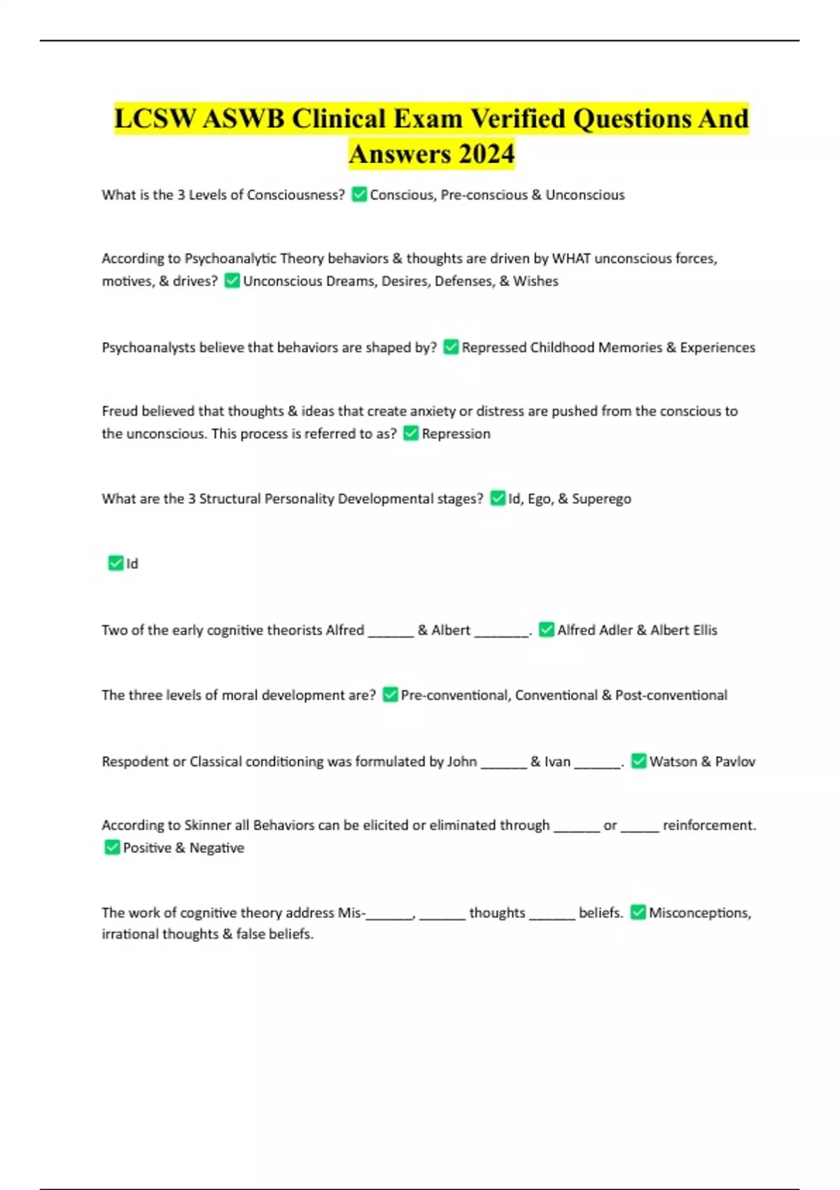 LCSW ASWB Clinical Exam Verified Questions And Answers 2024 LCSW ASWB Clinical Exam Verified Questions And Answers 2024