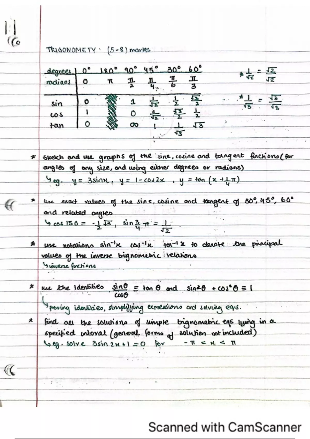 Notes on everything that is included in AS level Cambridge trigonometry, tailored specifically to the syllabus. Includes question types with answers.