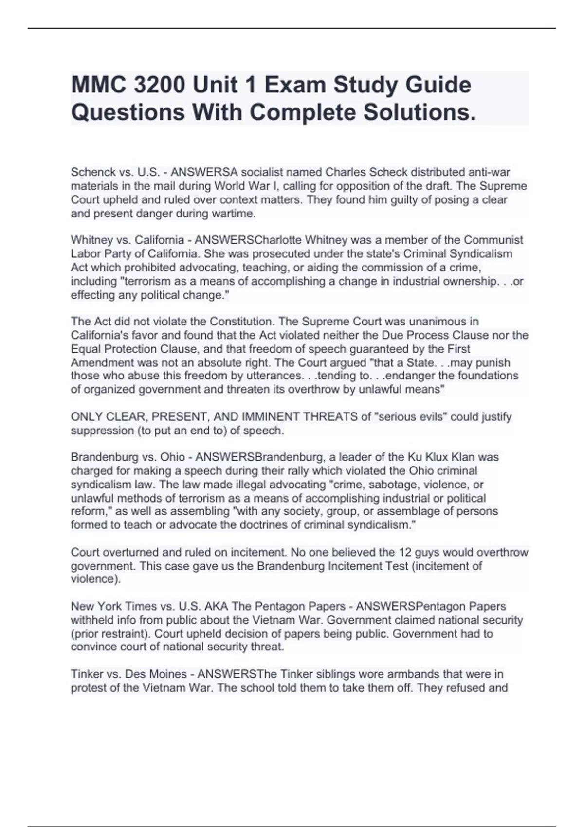 MMC 3200 Unit 1 Exam Study Guide Questions With Complete Solutions.