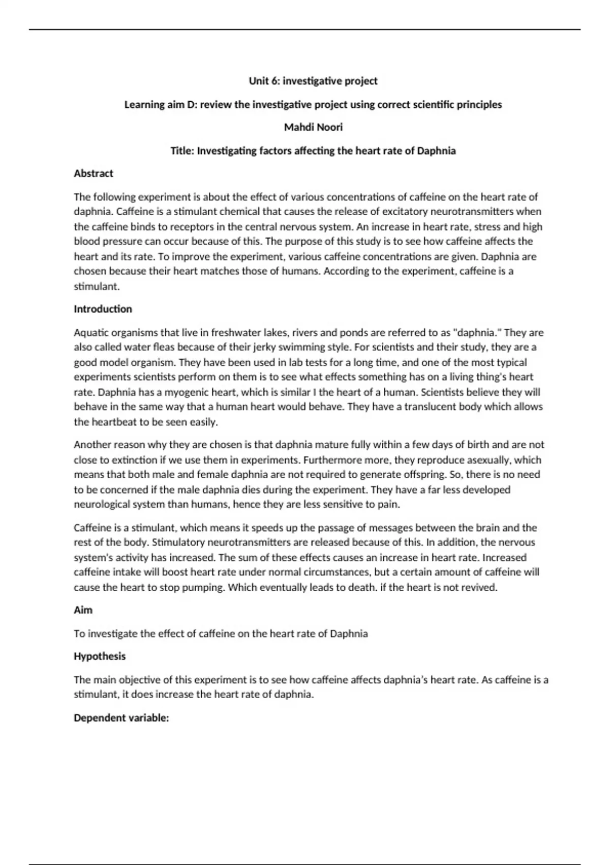 Learning aim D: review the investigative project using correct scientific principles